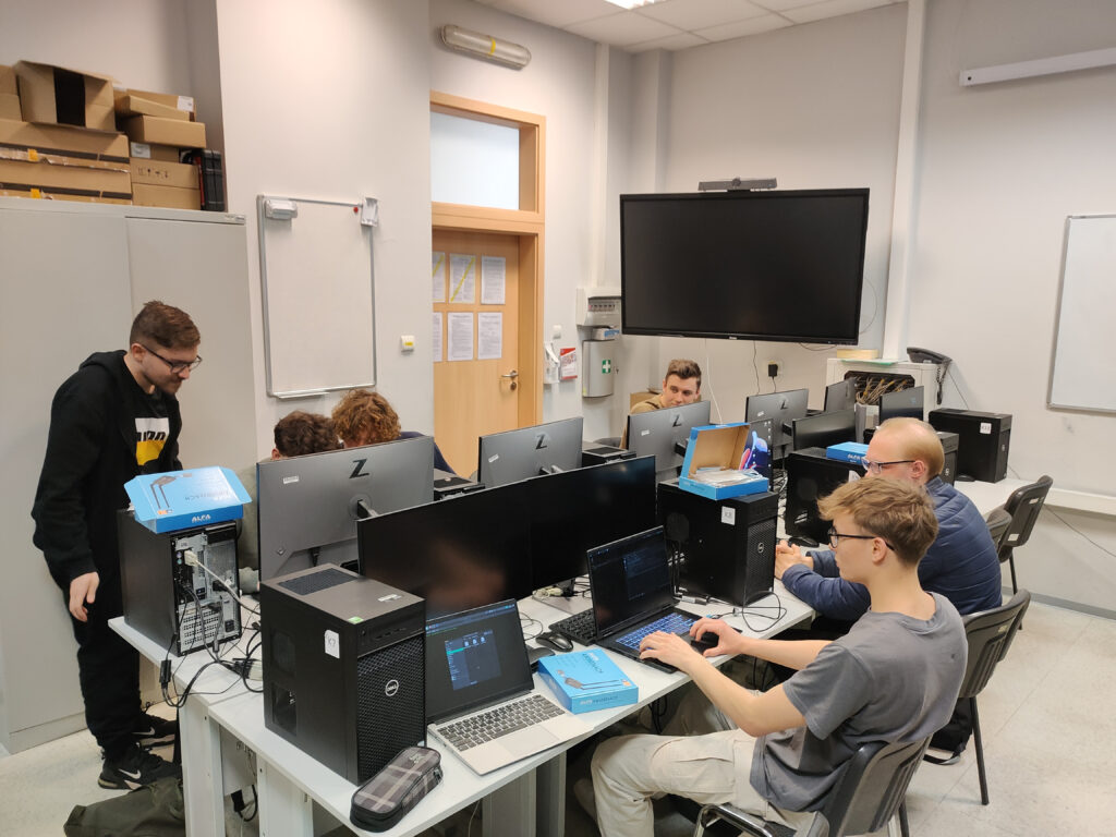 Semestr ten minął nam pod znakiem intensywnej pracy i ciekawych spotkań. Zaczęliśmy od pierwszej oficjalnej rekrutacji oraz spotkania organizacyjnego. Następnie sekcje tematyczne rozpoczęły cykl warsztatów: w sekcji Networks rozkładaliśmy na części zaawansowane zagadnienia z Routing & Switching, w sekcji SDN szlifowaliśmy umiejętności automatyzacji sieci, a grupa początkująca solidnie przygotowywała się z podstaw routingu, VLANów i STP.